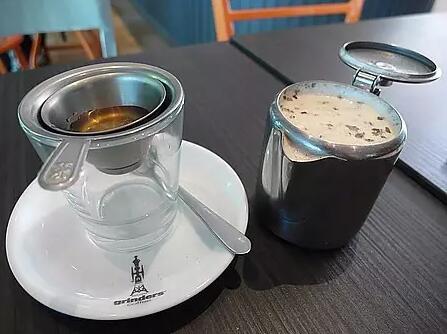 浓缩咖啡+蒸过的热牛奶